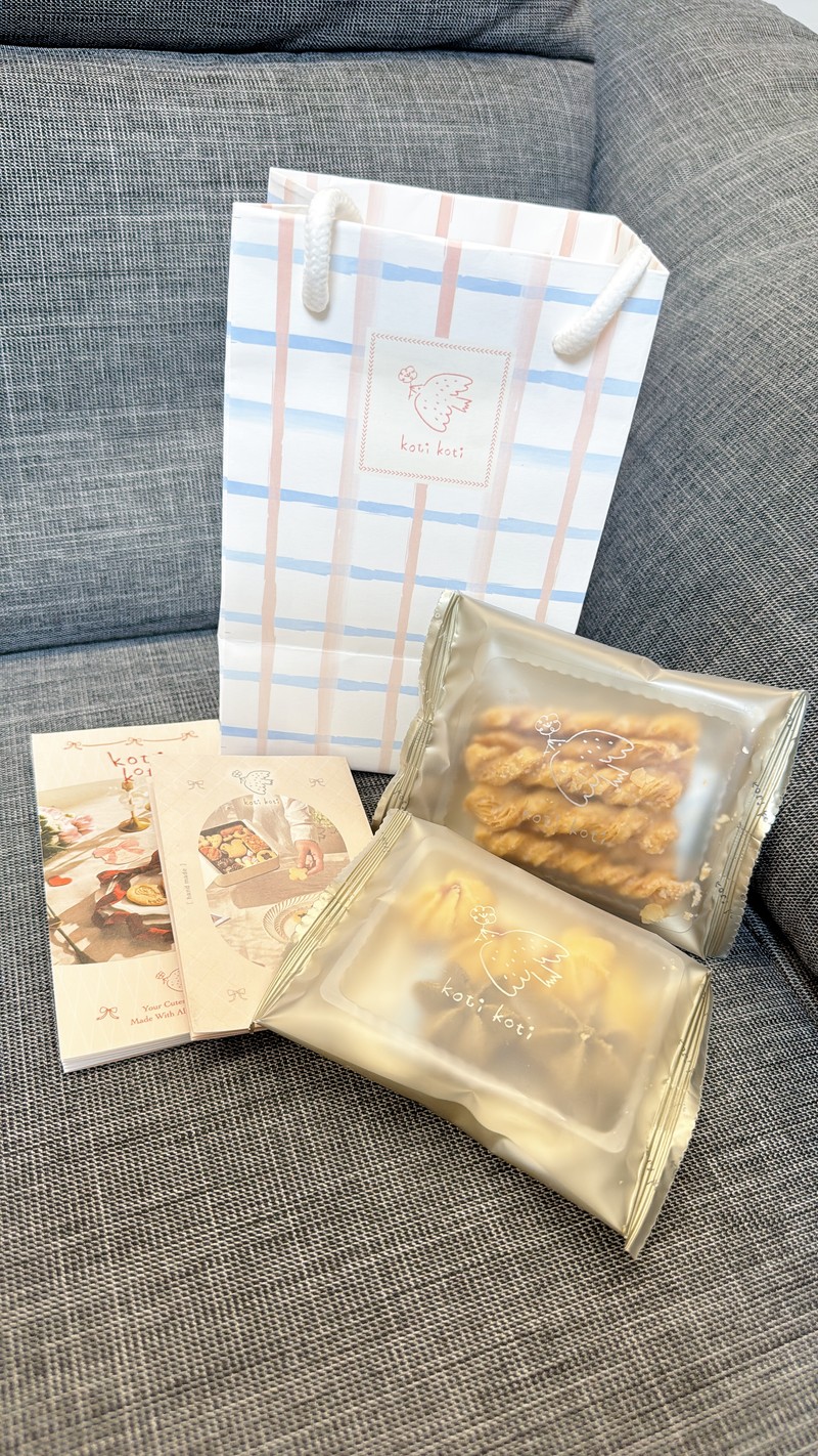 Kotikoti是我找了5-6間喜餅中,最後精挑細選出來的,從外盒包裝小清新感又喜氣,餅乾簡單好吃造型小巧,最重要的是有我們很喜歡的磅蛋糕、費南雪、瑪德蓮,真的好棒!