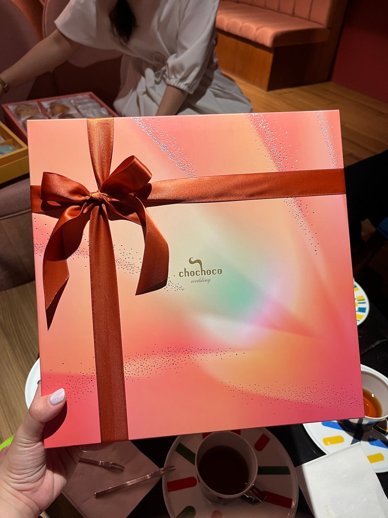 一開始是在線上搜尋,到後來參加婚展時,都有注意到 chochoco 。最初吸引我的是它的禮盒設計,外觀色調的配置,完全打中我倆。