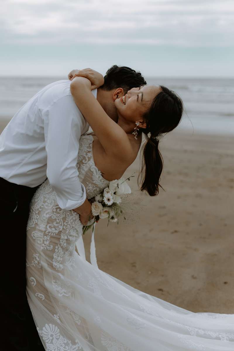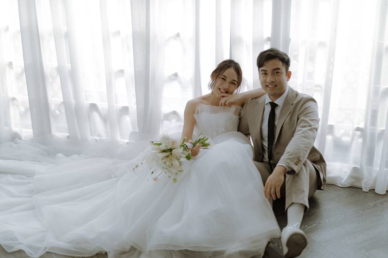 當初在網路以及dcard上收集2-3家,後來看到老師的作品以及到j2板橋試穿婚紗後,當天就直接下訂了。