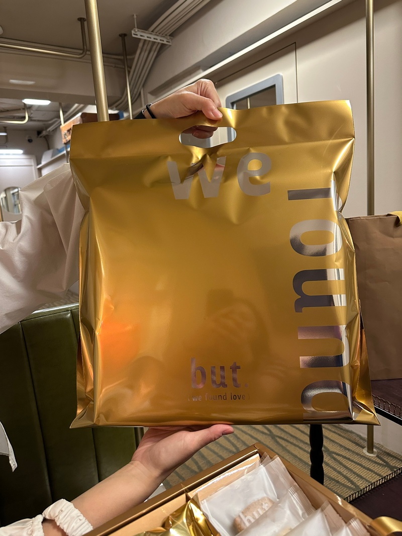 到了當天到現場試吃,喜餅顧問Una很熱情的招待我們,試吃的環境像在電車裡的感覺,Una也告訴我們想要呈現像愛的列車的感覺XD,Una在給我們試吃喜餅的同時也很仔細的講解口味,搭配現場泡的茶飲,吃完十款點心後,我們也覺得找到了唯一我和老公都覺得合適,口味及外型也都喜歡的喜餅,每種口味都沒有地雷,甚至被吃了第一口就驚豔的奶油餅乾圈粉到想要現場買一盒(笑~),喜餅的外包裝也很獨特很酷。在試吃完的後續,喜餅顧問Una也都很熱情很迅速的回覆我們的問題,在和老公討論後,終於決定下訂but.(we found love)家的艷火16入喜餅,我終於逃出選擇喜餅的黑洞了XD
