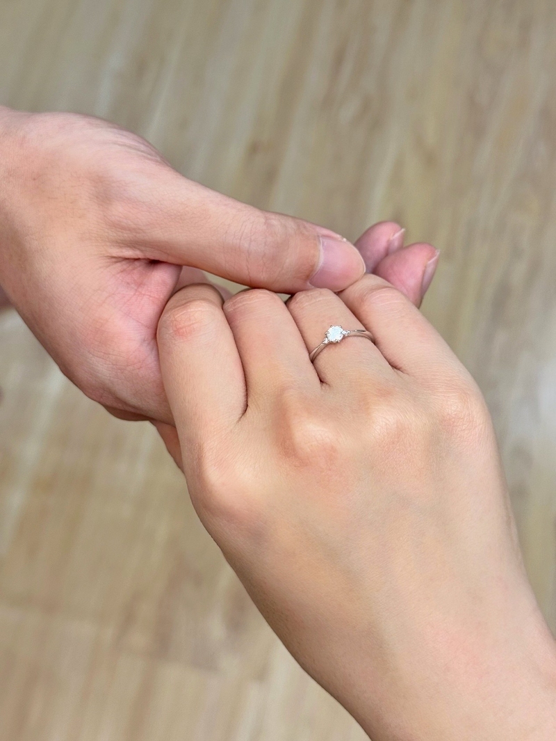 求婚當天的粉色與白色氣球、旅行照片、娃娃、「Marry me」燈飾,還有那段影片和誓言,這些細節都成為我們永遠的回憶。女友愛上我最初挑的戒指,讓我覺得這一切像是命中注定,彷彿這枚戒指從一開始就屬於我們。「Stay with you」的刻字,是這段旅程中最動人的點睛之筆。它不僅是對女友的承諾,也是我對我們愛情的信念。