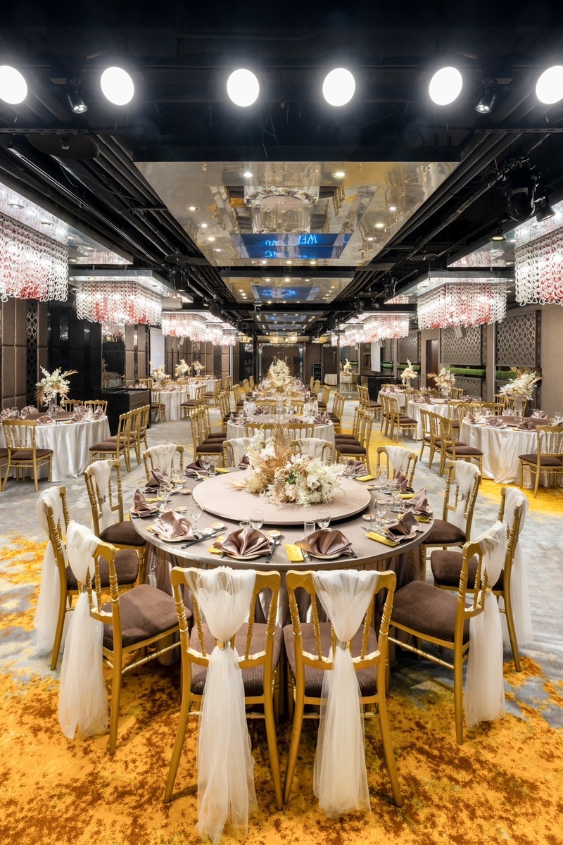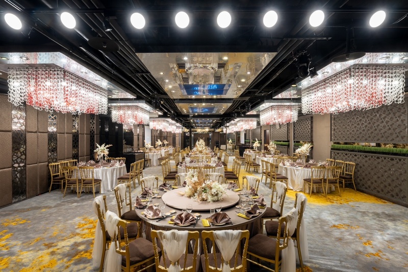 這邊的場地選擇很多,無論是典雅路線或是帶有現代風格的設計都找得到,我們特別喜歡樓上的廳房,整體空間挑高寬敞,燈光和佈置也很有質感,是那種一看就覺得「這裡可以辦婚禮」的感覺。