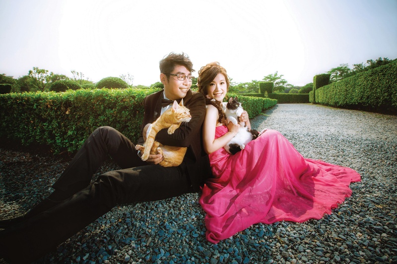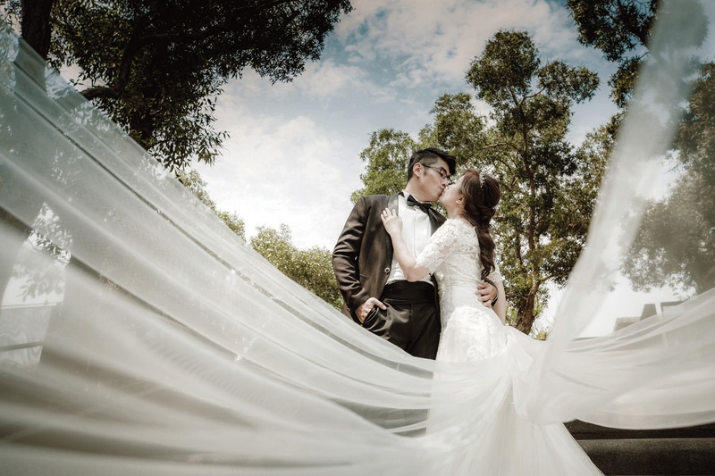 拍攝那天,透過紗紗老師專業的巧手,呈現出最完美的裝扮。記得那天的行程很趕,但是非常感謝攝影師武哥的專業指導,能夠不斷協助我們變換角度擺出浪漫的姿勢,讓不習慣面對鏡頭的新人十分放心。即使一整天的過程非常辛苦,所有人也大汗淋漓,但有攝助阿兔與紗紗老師一路細心的協助,拍照工作也順利的完成了。