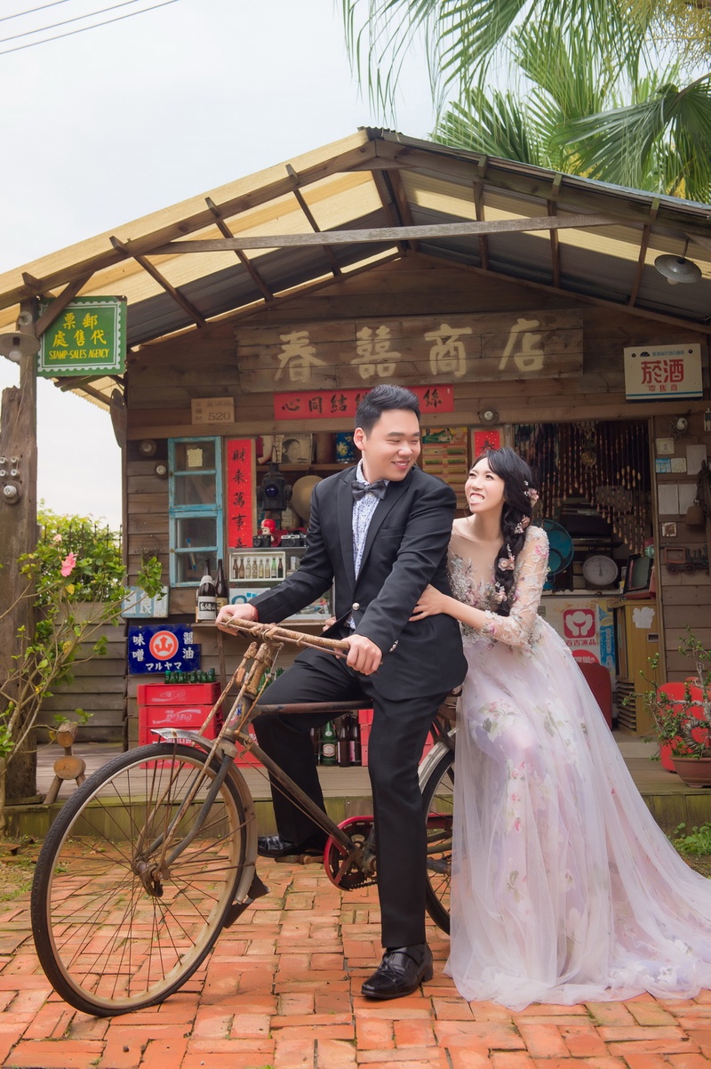 原本我跟老公要找一間價位便宜的婚紗公司找了一間婚紗工作室後來老公又說再去找看看別家婚紗公司比較看看後來就來到時尚婚紗當我們進去遇到很熱情的小璇姐姐招呼在聊天當中聽完我們的需求之後小璇姐姐也仔細跟我們介紹還有見意讓我覺得很滿意所以就跟決定在時尚婚紗拍照後面我們就約時間跟攝影師楊總監討論拍婚紗地點跟風格因為沒有拍過我們一點頭緒也沒有還好楊總監以他專業經驗提出他的意見那我們參考最後我們就決定楊總監的意見拍照的地點和拍照的風格,討論完拍照的地點和風格完就開始選拍照的婚紗禮服這個項目我最興奮因為之前都看別人穿婚紗禮服都很漂亮所以也很期待自己選適合自己的婚紗禮服拍照當婚紗祕書芷妍小姐打開電腦檔案時裡面有很多好漂亮婚紗禮服芷妍小姐開始為我們介紹裡面的禮服最後我們選了5套禮服就開始試穿原本我們只能選一白色婚紗跟一套晚宴禮服可是在試穿當中我很喜歡一套晚宴禮服如果再選一套禮服就要加錢心裡很猶豫要不要最後還是決定多加一套選完禮服之後我們約拍照的時間,再拍照前一天遇到了下雨天那天晚上我一直很擔心隔天還是下雨天這樣就沒辦法拍婚紗照了所以我心裡就一直祈禱隔天不要下雨讓我們可以順利拍完婚紗照果然老天爺聽到我的心聲隔天雨就停了我跟老公就照著約好的時間去婚紗公司準備做造型一開始由造型師姸芯老師幫我穿第一套禮服穿完之後就開始幫我化妝還有頭髮做造型而老公是由燈光師仲佑帶領他去試穿西裝我很少化妝的人當姸芯老師幫我化好妝還頭髮造型看著鏡子我不敢相信鏡子裡是我自己造型老師真的太厲害了,我跟老公都準備好之後由攝影大哥他們開車前往拍婚紗地點一個小時之後終於到了拍照地點我們先去休息室再做補妝動作之後就開始拍,拍照當中攝影大哥都會仔細指引拍照動作一切都很順利進行不過後面就有一個小插曲就是攝影大哥要老公騎上腳踏車當老公要騎上去時不小心弄破褲子當時我們既傻眼又好笑這也成為我們拍婚紗最印象深刻的回憶小插曲結束之後又繼續拍後面又發生第二個小插曲就是我們要拍一游泳池的景結果害燈光師他不小心腳踩進泳池裡鞋子都濕了還好那裡有拖鞋可以換當時心裡對燈光師有些不好意思,終於下午4點多婚紗多拍完了我們就準備好開車回去婚紗公司了,最後真的很感謝服務周到的小璇姐姐.風趣的攝影師揚大哥.婚紗祕書的芷姸.造型師的姸芯老師.燈光師仲佑讓我跟老公有美好拍婚紗的回憶