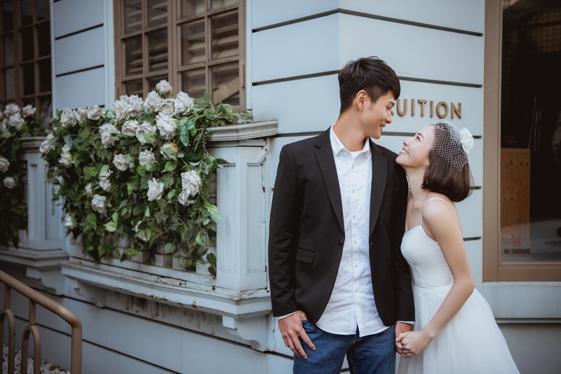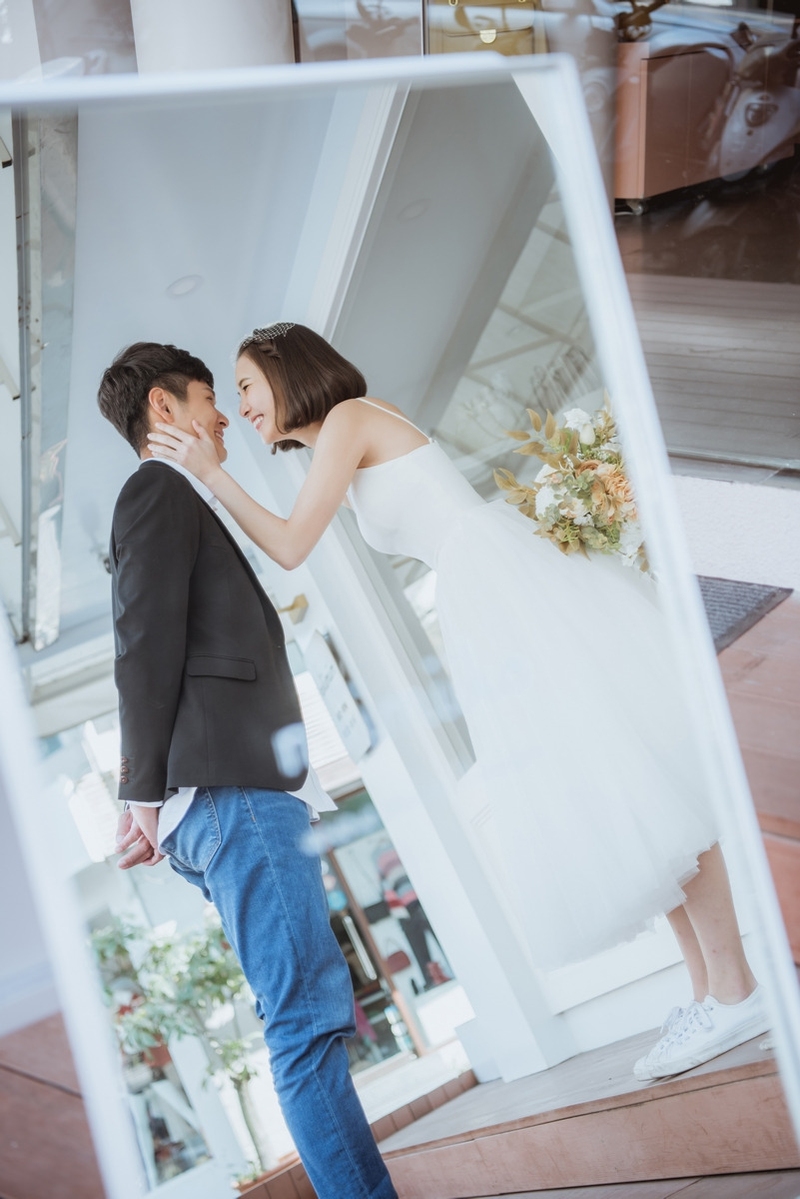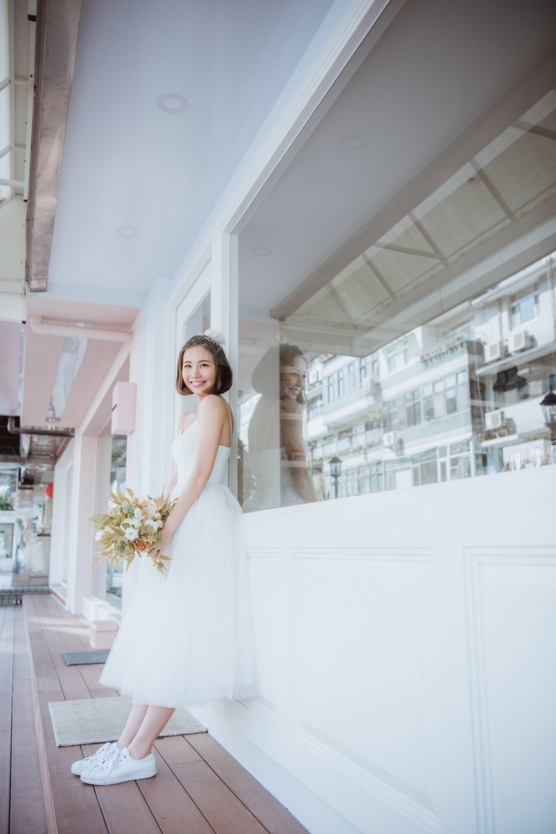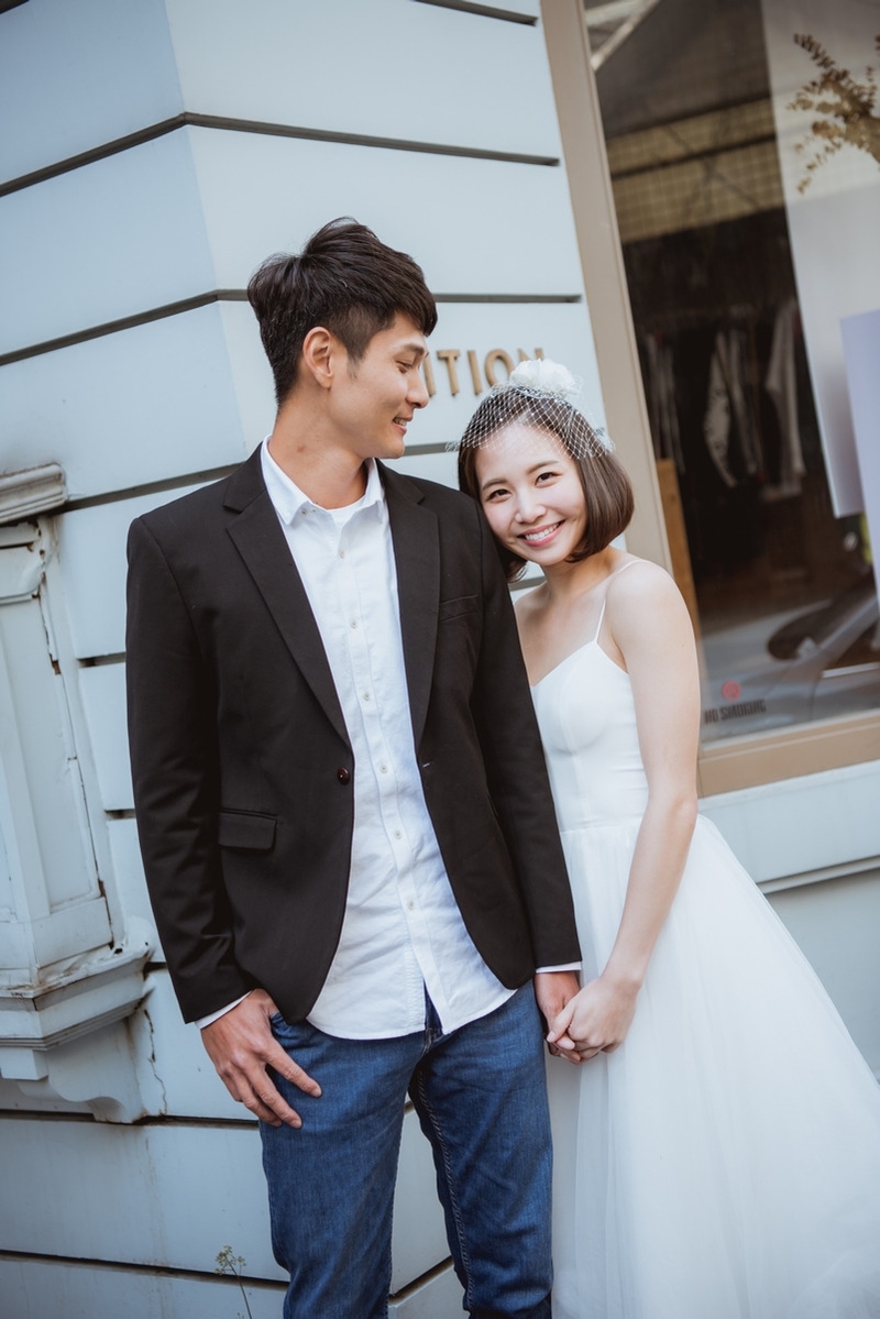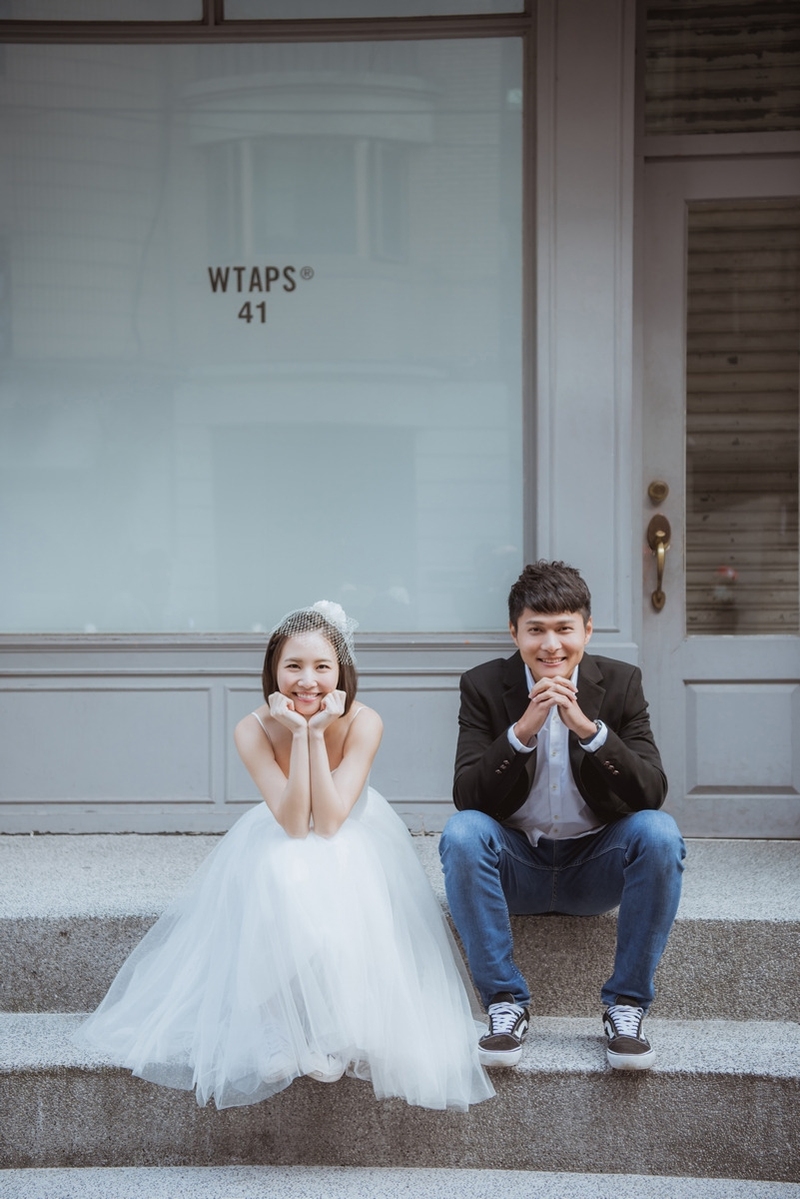 第一套我們選了一件輕婚紗去東區的街頭街拍,