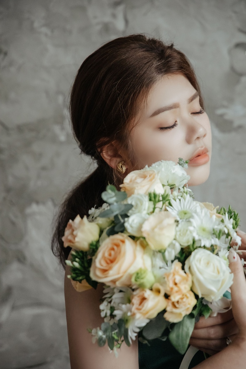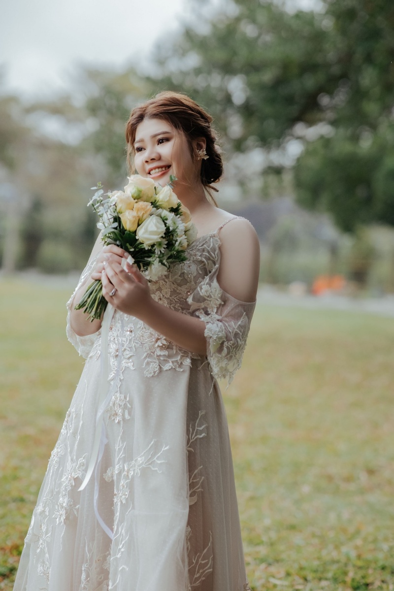 追蹤艾莉大約有三年的時間了(一開始朋友在花朵給她拍有陪著去外拍),那時候就覺得艾莉很親切氣氛輕鬆自在,成品照片也很自然,心底就想 未來結婚也要找艾莉!在籌備婚禮的第一件事情就是手刀私訊艾莉,得知她要開自己的工作室也真心為她感到開心!最後當然有約到洋洋的時間拉!至於指定造型師紫綺是因為想把原本預約的時間提早所以打了洋洋的電話,那天印象很深刻是星期六電話那頭接起來傳來 〝親愛的 我在新秘晚點回電好嗎?〞馬上被電到,心想這位也太可愛了吧!就搜尋她的IG看了她的新秘造型馬上淪陷~
