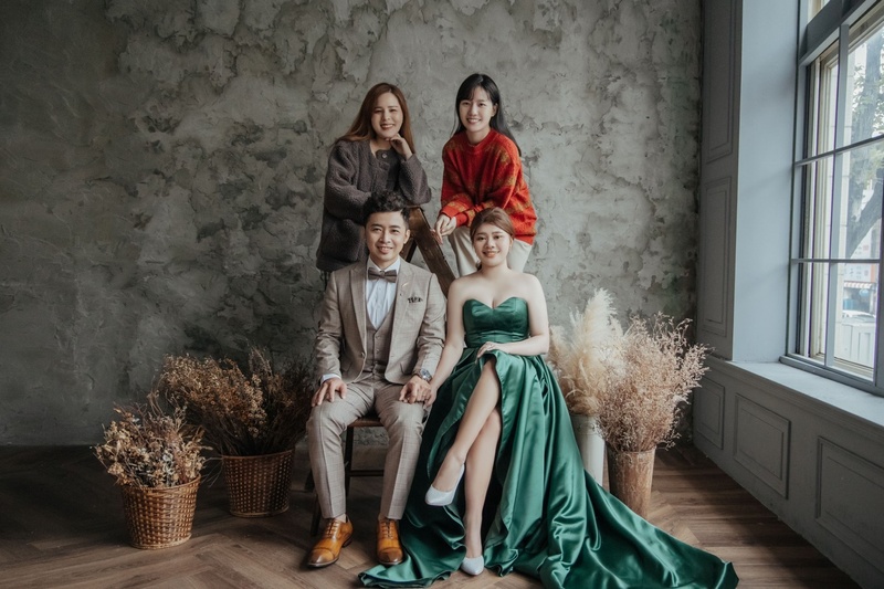 拍攝當天早上梳化跟紫綺的獨處時光,發現雖然她外表不好親近,但其實人很好也很瘋。整體妝感也是我喜歡的小清晰~在整個拍攝的過程中艾莉和紫綺逗笑了平常不愛笑的老公,而且那笑容還是超級自然沒有尷尬癌的笑容唷!另外自己本來就很活潑在艾莉的鏡頭下反而更多了安靜與溫柔。看到照片時只有滿滿感動,謝謝她們讓我們知道自己也可以這麼美這樣帥❤️因為沒有選擇謝卡,換了多一張精修照就把兩位仙女一起入本拉~超可愛的❤️