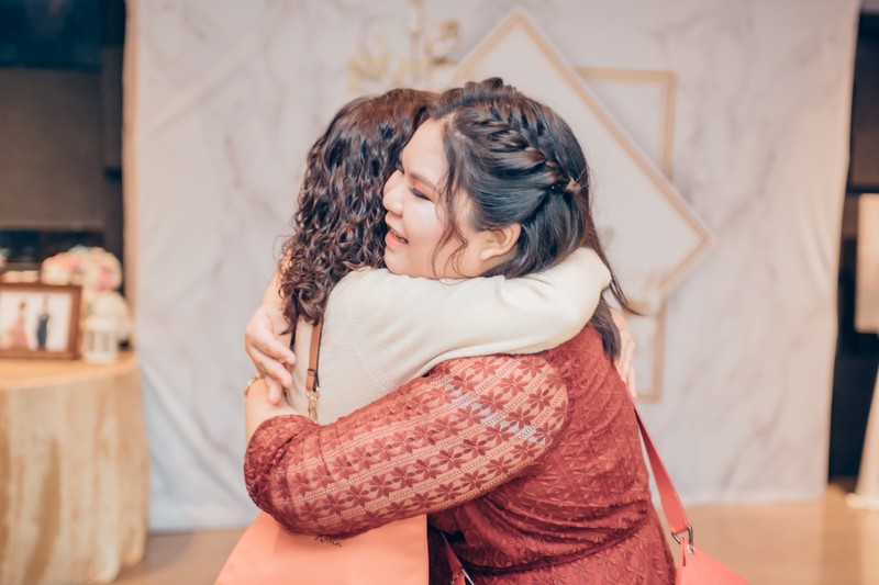 身為新娘,婚禮開始前我都在新娘房,除了跟來探房的親友合照外,其實不太知道外面發生什麼事,但克里夫是雙人攝影,他們一個跟著新娘,另一位就是跟著新郎在接待處,事後看到照片,才知道現場好歡樂啊,尤其我們有許多親友都是從國外回來喝喜酒(當時還需要7+7,真的超感謝他們的),所以朋友們碰面也都非常開心,熱情打招呼的畫面都被克里夫團隊一一捕捉,看著照片我彷彿能感受到他們的開心