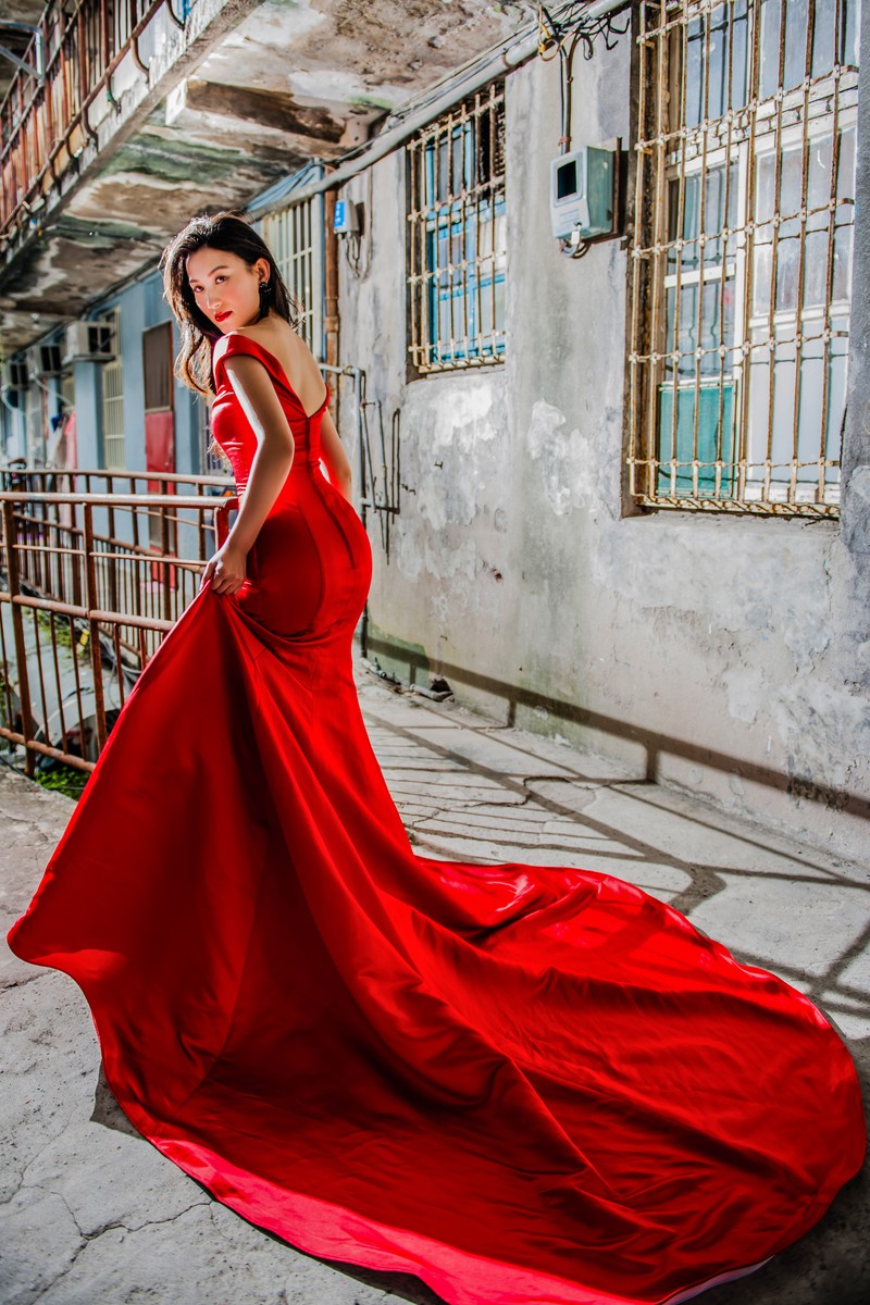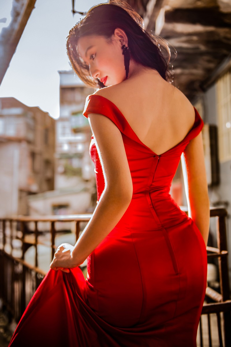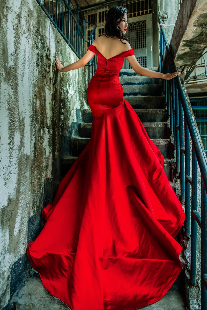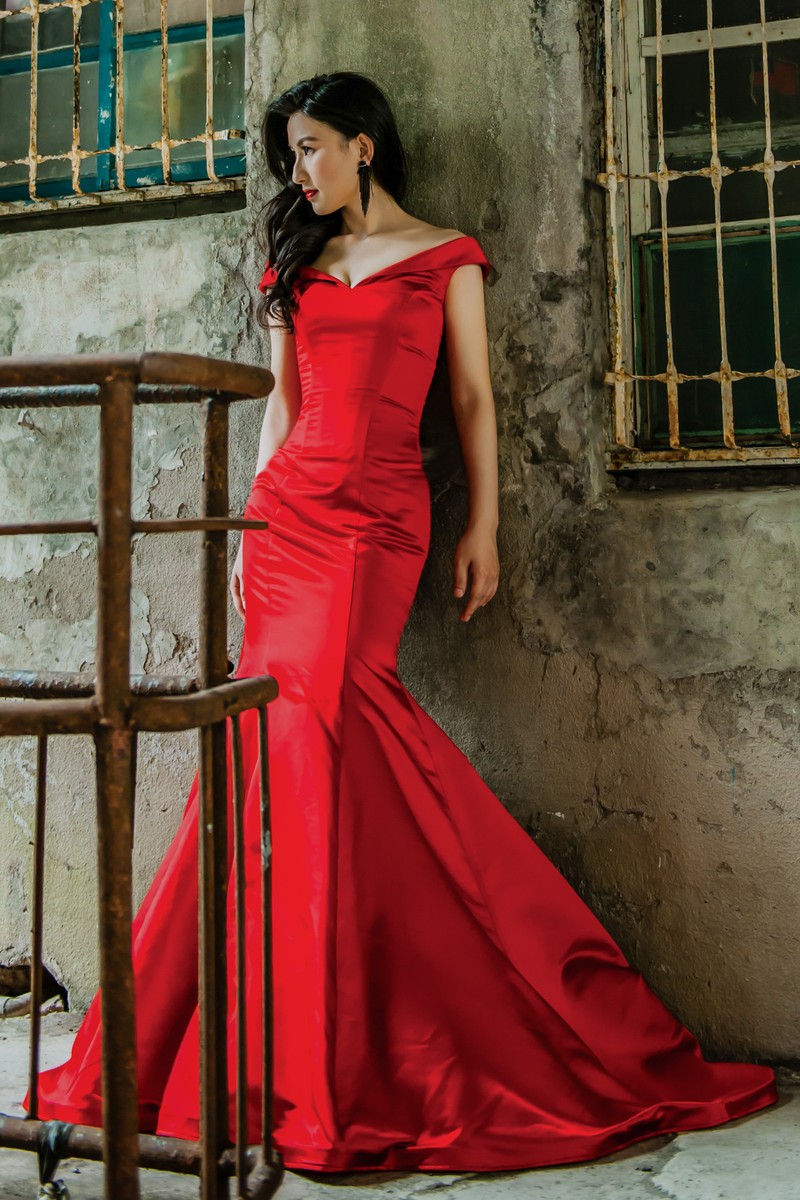 大紅是最難找到簡單剪裁又不俗氣地禮服顏色!此款正是能完美詮釋的時尚感禮服