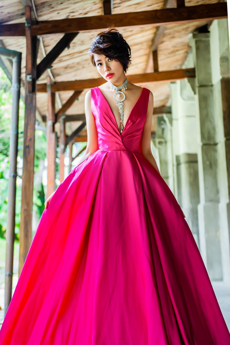 這是非常深V的禮服,但圖中有稍微提高,適合喜愛性感禮服的新娘!
